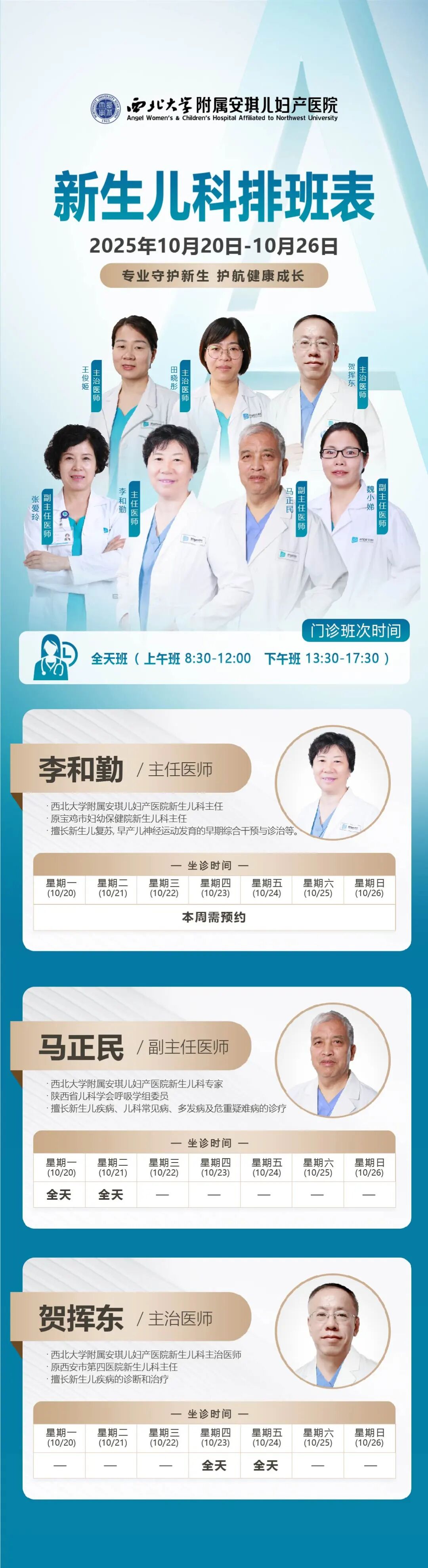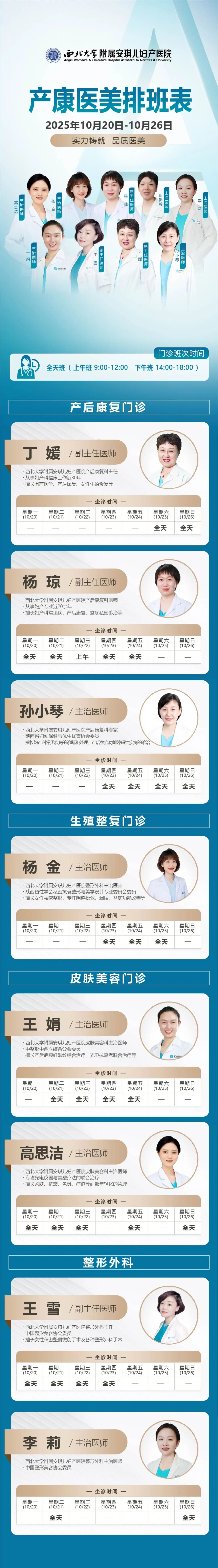 西安安琪儿国庆中秋双节假期门诊排班表来啦 请收好~
