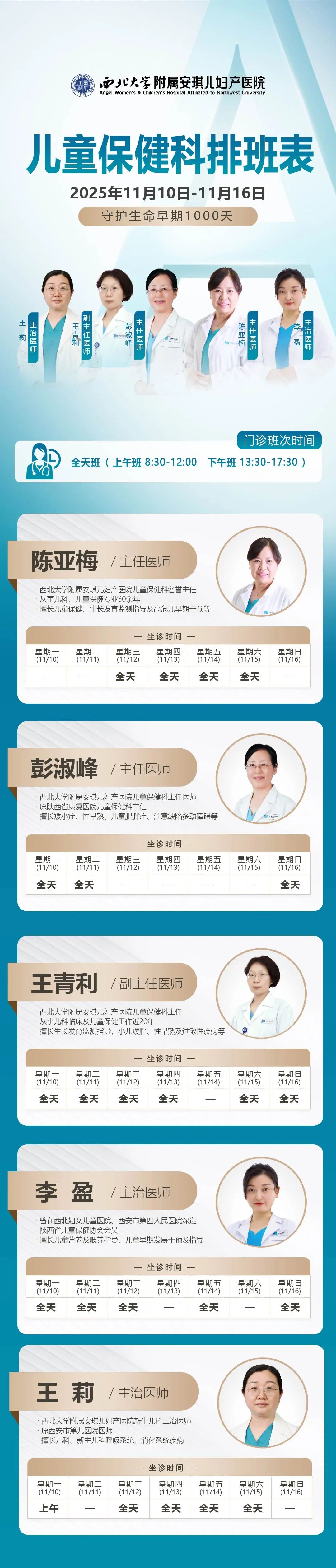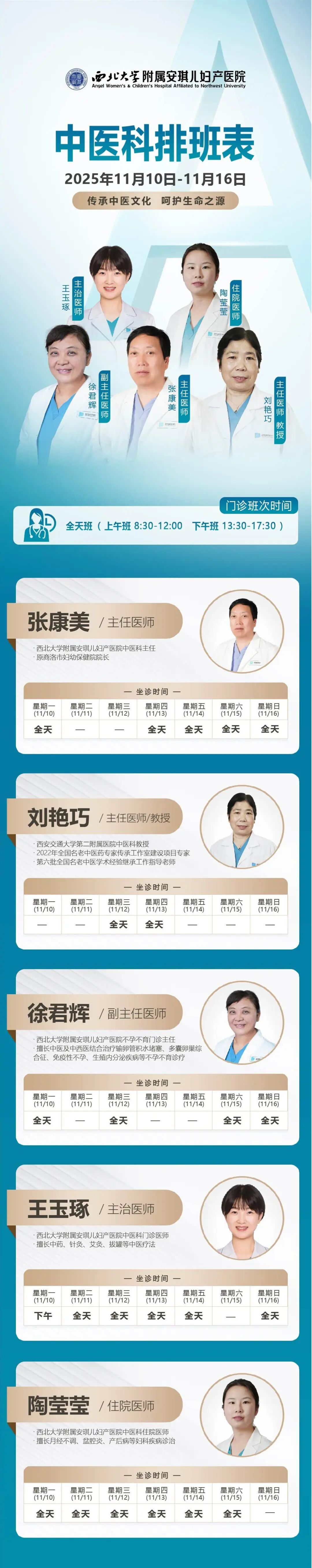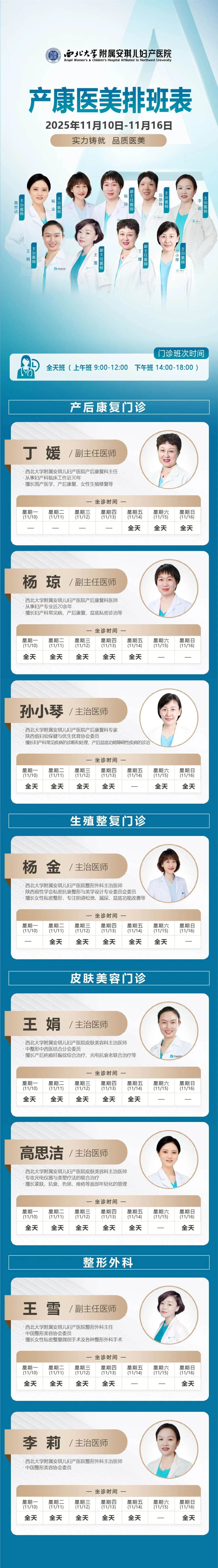 西安安琪儿妇产医院(11月10日至11月16日)专家坐诊时间表