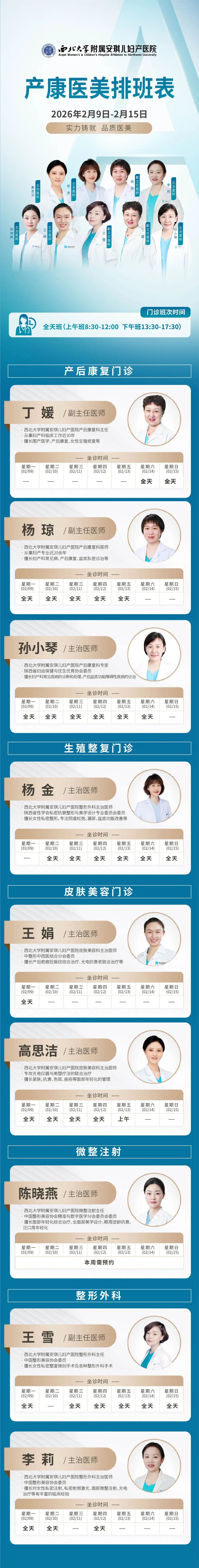 西安安琪儿妇产医院(2月9日至2月15日)专家坐诊时间表