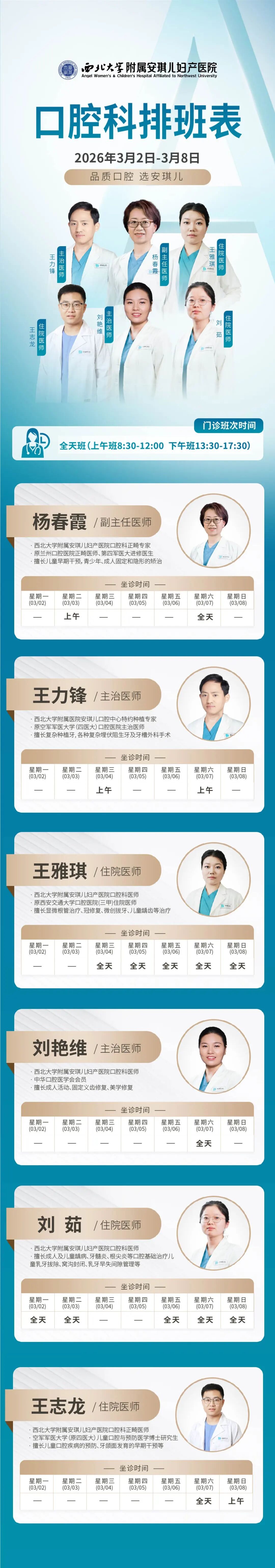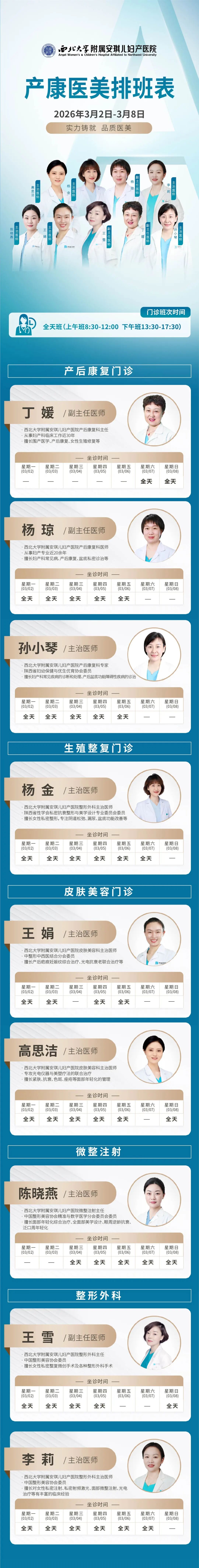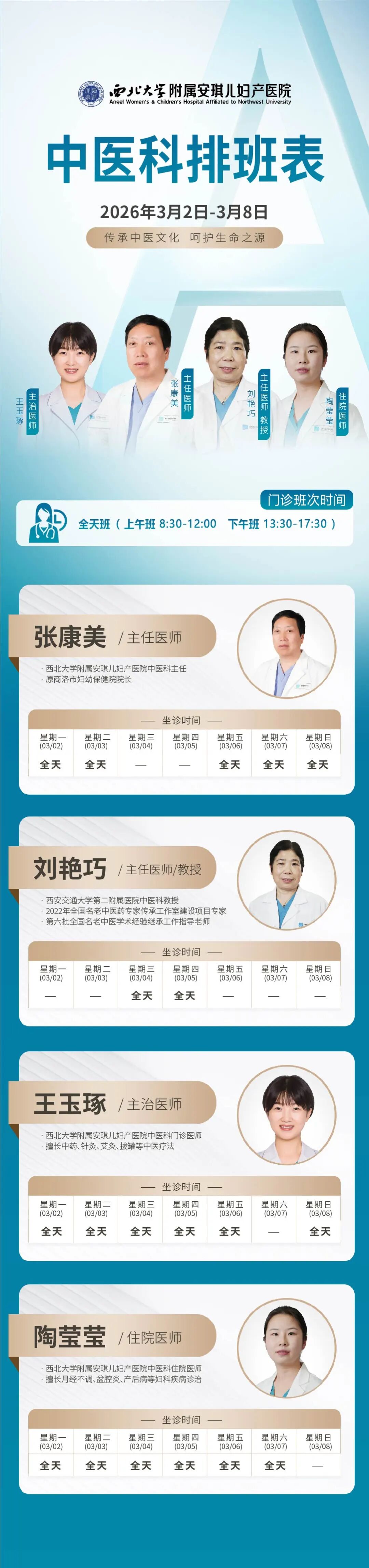 西安安琪儿妇产医院(3月2日至3月8日)专家坐诊时间表
