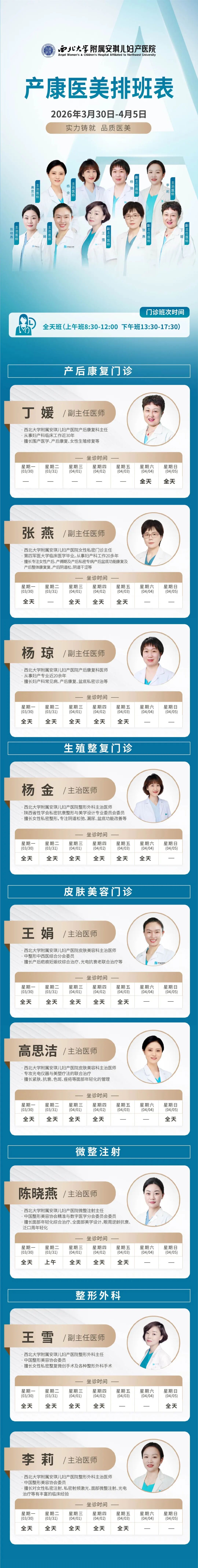 西安安琪儿妇产医院(3月30日至4月5日)专家坐诊时间表