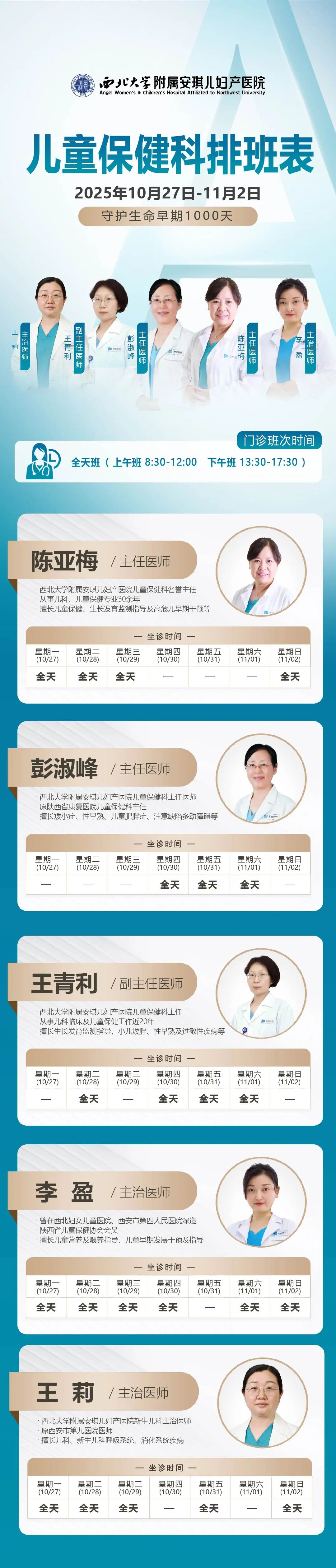西安安琪儿国庆中秋双节假期门诊排班表来啦 请收好~