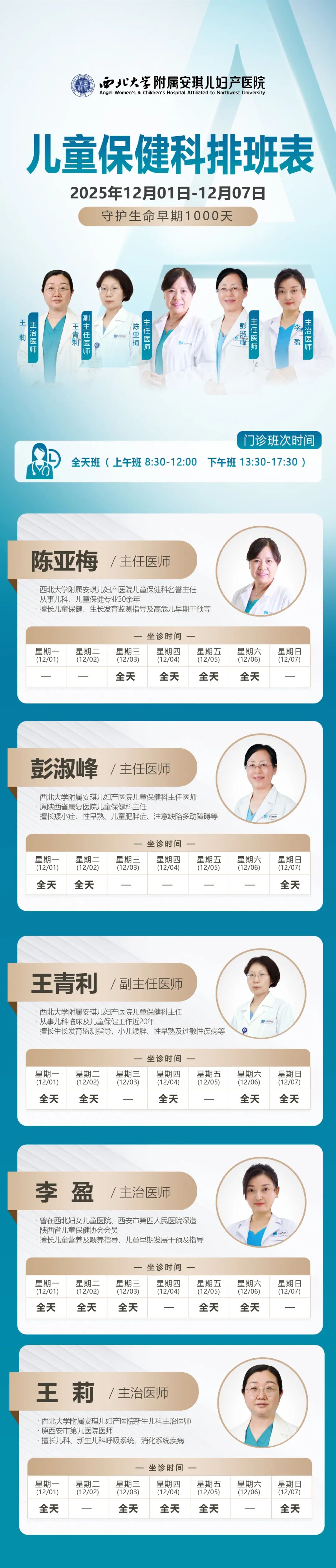 西安安琪儿妇产医院(12月8日至12月14日)专家坐诊时间表